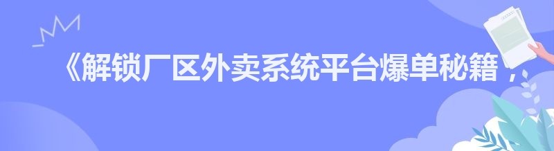 编辑 《解锁厂区外卖系统平台爆单秘籍,你知道吗?》