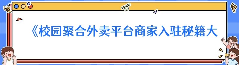 《校园聚合外卖平台商家入驻秘籍大公开》