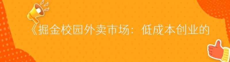 《掘金校园外卖市场:低成本创业的小程序开发秘籍》