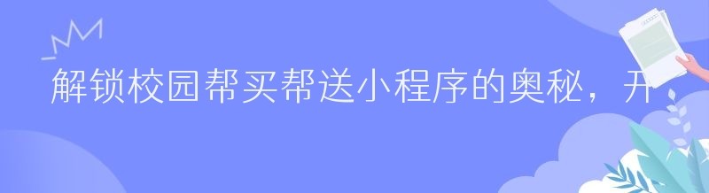 解锁校园帮买帮送小程序的奥秘,开启便捷校园生活新时代