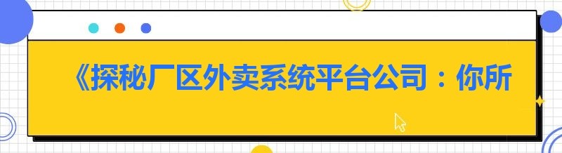 《探秘厂区外卖系统平台公司:你所不知道的行业内幕》