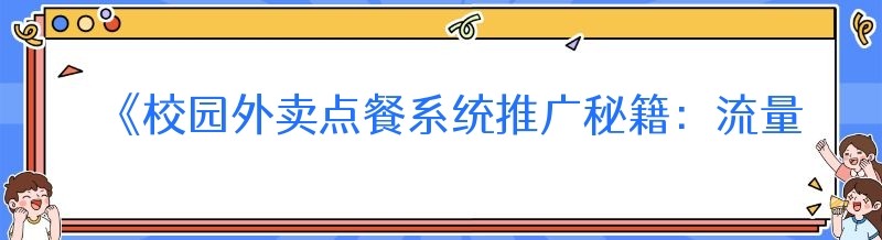《校园外卖点餐系统推广秘籍:流量滚滚来》