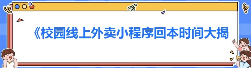 《校园线上外卖小程序回本时间大揭秘!这些因素是关键》