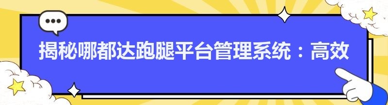 在当今竞争激烈的市场环境中,跑腿平台的高效管理至关重要。哪都达跑腿平台管理系统凭借其强大的功能和优势,成为众多创业者和企业的首选。本文将深入解析哪都达跑腿平台管理系统,为您揭示其独特之处。