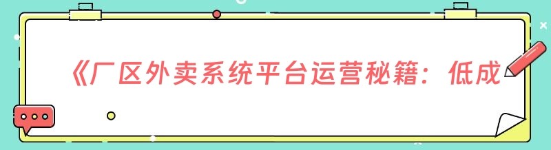 《厂区外卖系统平台运营秘籍:低成本打造高效服务》
