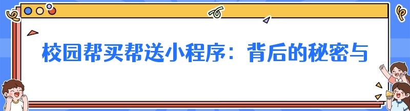 在大学校园里,帮买帮送服务正逐渐成为一种流行的生活方式。随着智能手机的普及和互联网技术的发展,校园帮买帮送小程序应运而生,为学生们提供了更加便捷、高效的服务。那么,自己创建校园帮买帮送小程序到底有哪些真相呢?本文将为您一一揭晓。