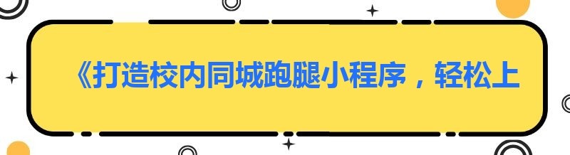 编辑 《打造校内同城跑腿小程序,轻松上手秘籍大公开》