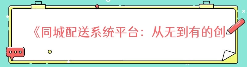 《同城配送系统平台:从无到有的创业之路》