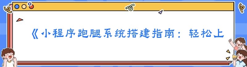 《小程序跑腿系统搭建指南:轻松上手,开启便捷服务之旅》