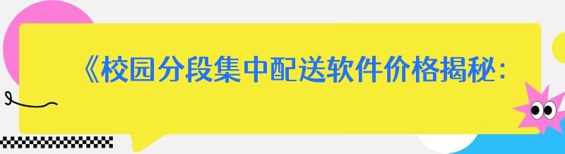 《校园分段集中配送软件价格揭秘:低成本创业的关键要素》