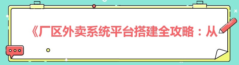 《厂区外卖系统平台搭建全攻略:从0到1的实操指南》