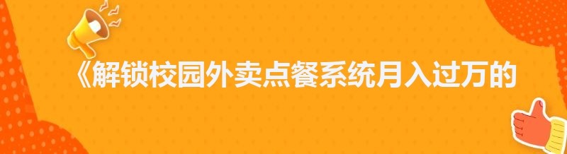 《解锁校园外卖点餐系统月入过万的秘籍,你知道几种?》