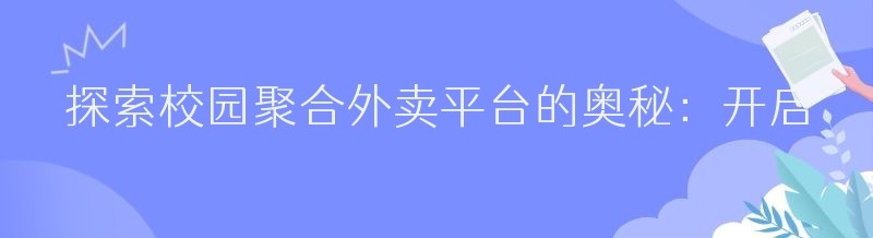探索校园聚合外卖平台的奥秘:开启便捷校园生活新时代