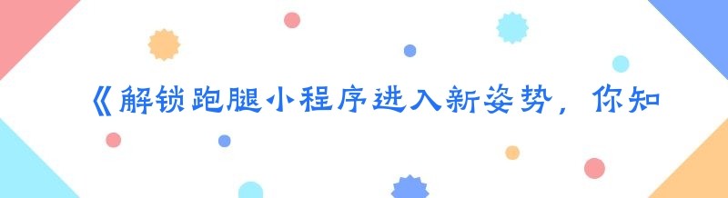 《解锁跑腿小程序进入新姿势,你知道几种?》