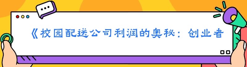 在当今充满机遇与挑战的创业领域,校园配送公司正逐渐崭露头角,成为众多创业者眼中的热门选择。校园作为一个庞大且稳定的消费市场,为配送业务提供了广阔的发展空间。然而,要想在这个领域取得成功,创业者必须深入了解校园配送公司的利润构成及影响因素。本文将为您揭开校园配送公司利润的神秘面纱,为您的创业之路提供宝贵的参考。