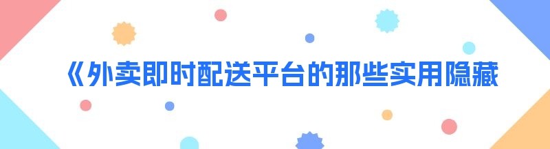 在这个快节奏的时代,外卖即时配送平台已经成为了我们生活中不可或缺的一部分。无论是忙碌的工作日午餐,还是慵懒的周末晚餐,只需轻轻一点,美食就能迅速送到家门口。然而,你是否知道这些外卖即时配送平台还有一些隐藏技巧呢?掌握了这些技巧,不仅能让你的外卖体验更加便捷,还能为你节省不少时间和金钱。下面就来为大家详细介绍一下。