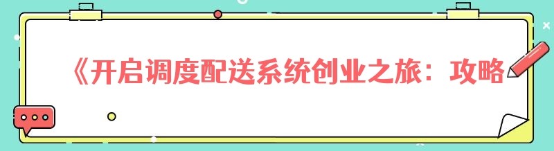 《开启调度配送系统创业之旅:攻略全解析》