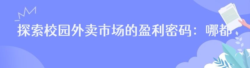 探索校园外卖市场的盈利密码:哪都达外卖点餐系统的魅力