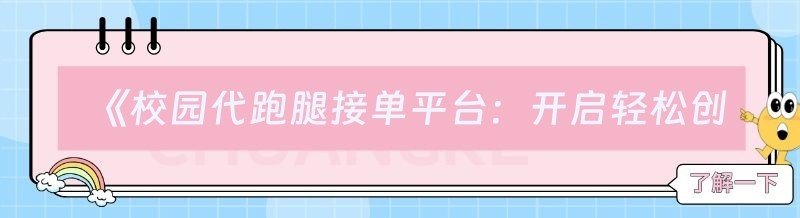 《校园代跑腿接单平台:开启轻松创业之旅》
