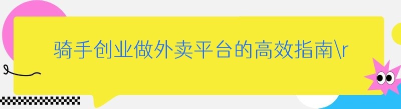 骑手创业做外卖平台的高效指南
