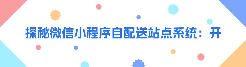 探秘微信小程序自配送站点系统:开启便捷配送新时代