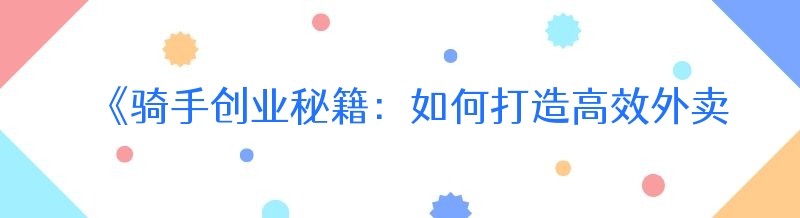 - 骑手创业指南:校园外卖经营秘籍大公开