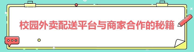 在校园这个充满活力与商机的市场中,校园外卖配送平台如雨后春笋般涌现。对于平台来说,与商家建立良好的合作关系是实现可持续发展的关键。那么,如何在短短1分钟内解锁校园外卖配送平台与商家合作的奥秘呢?本文将为您详细揭晓。
