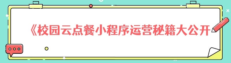 《校园云点餐小程序运营秘籍大公开》