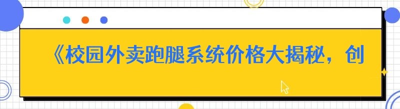 《校园外卖跑腿系统价格大揭秘,创业之路不再迷茫》