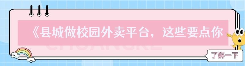 《县城做校园外卖平台,这些要点你必须知道!》