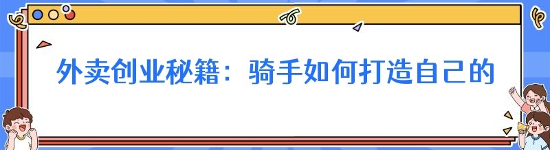 外卖创业秘籍:骑手如何打造自己的配送王国