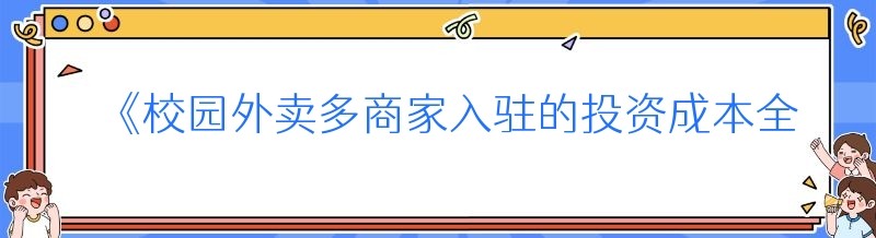 在校园这个充满活力与消费潜力的市场中,多商家入驻的校园外卖模式正逐渐兴起。对于许多有创业想法的人来说,了解这种模式需要投资多少钱是至关重要的一步。今天,就来为大家详细分享一下做多商家入驻校园外卖的投资成本情况。