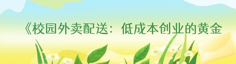 《校园外卖配送:低成本创业的黄金赛道与平台竞争应对策略》