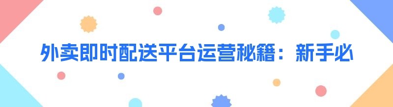 外卖即时配送平台运营秘籍:新手必知必会