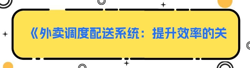 编辑 《外卖调度配送系统:提升效率的关键所在》