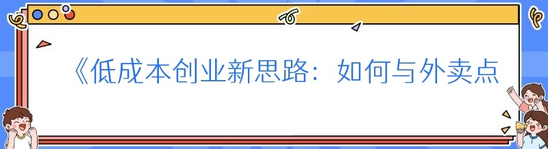 在当今社会,创业成为了许多人实现梦想的途径。然而,对于资金有限的创业者来说,如何以低成本开展创业项目是一个关键问题。与外卖点餐平台合作,就是一个不错的选择。