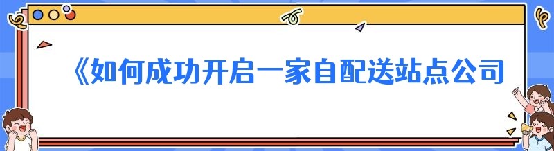 《如何成功开启一家自配送站点公司:你必须知道的关键要点》