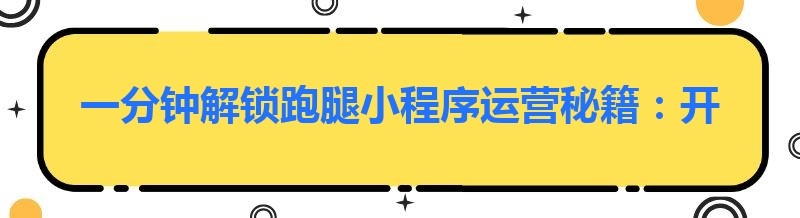一分钟解锁跑腿小程序运营秘籍:开启便捷服务新时代