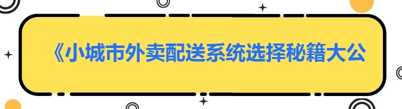编辑 《小城市外卖配送系统选择秘籍大公开》