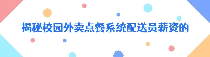 揭秘校园外卖点餐系统配送员薪资的那些事儿