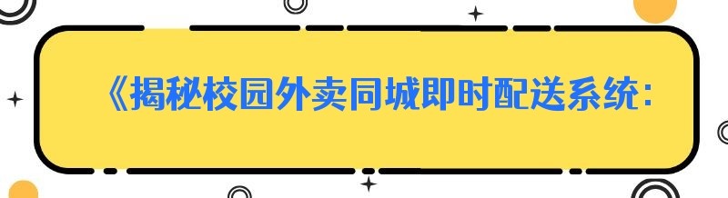 《揭秘校园外卖同城即时配送系统:你也能轻松打造》