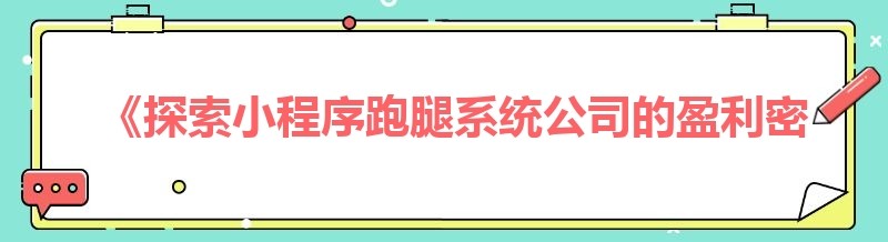 《探索小程序跑腿系统公司的盈利密码》