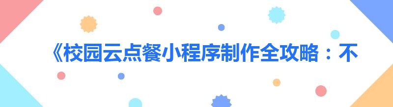 《校园云点餐小程序制作全攻略:不止一种方式,你都了解吗?》