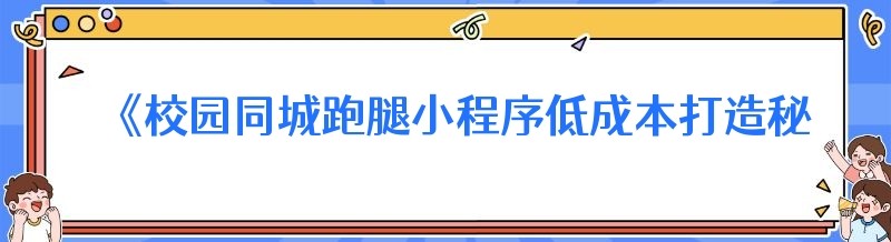 《校园同城跑腿小程序低成本打造秘籍大揭秘》