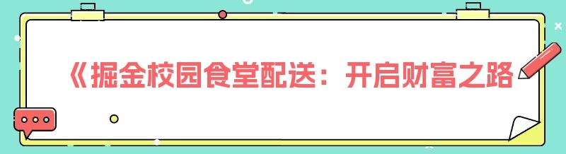 《掘金校园食堂配送:开启财富之路的秘籍》