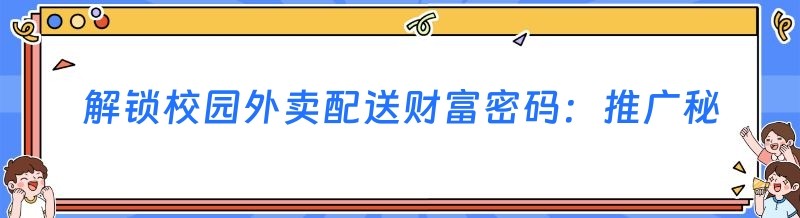 解锁校园外卖配送财富密码:推广秘籍大公开