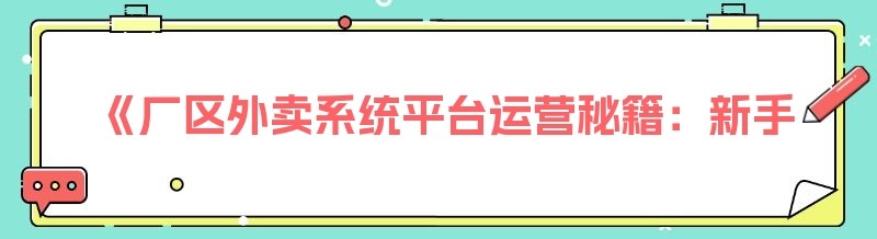 《厂区外卖系统平台运营秘籍:新手必知要点》