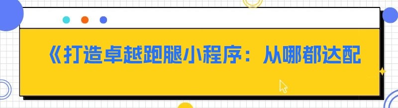 《打造卓越跑腿小程序:从哪都达配送端汲取灵感》