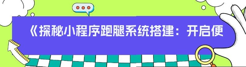 《探秘小程序跑腿系统搭建:开启便捷生活新时代》