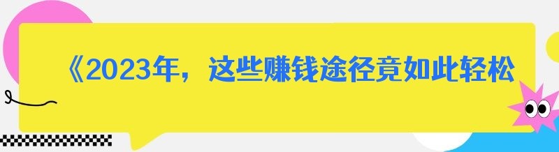 编辑 《2023年,这些赚钱途径竟如此轻松!》
